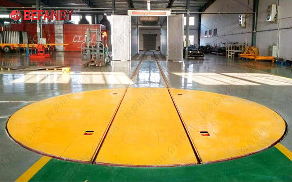 現(xiàn)在很多的工廠生產(chǎn)過程當(dāng)中,有許多多地方需要的轉(zhuǎn)彎半徑過小或者沒法鋪設(shè)彎軌的情況或是拐角處,電動換軌轉(zhuǎn)盤非常適應(yīng)這樣的工況。